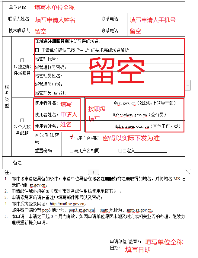 3.填写 《深圳市政务邮件系统申请表(外网)》。