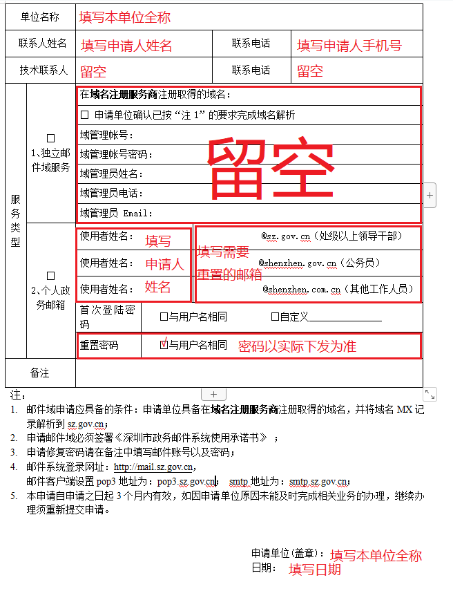 3.填写《深圳市政务邮件系统申请表(外网)》。