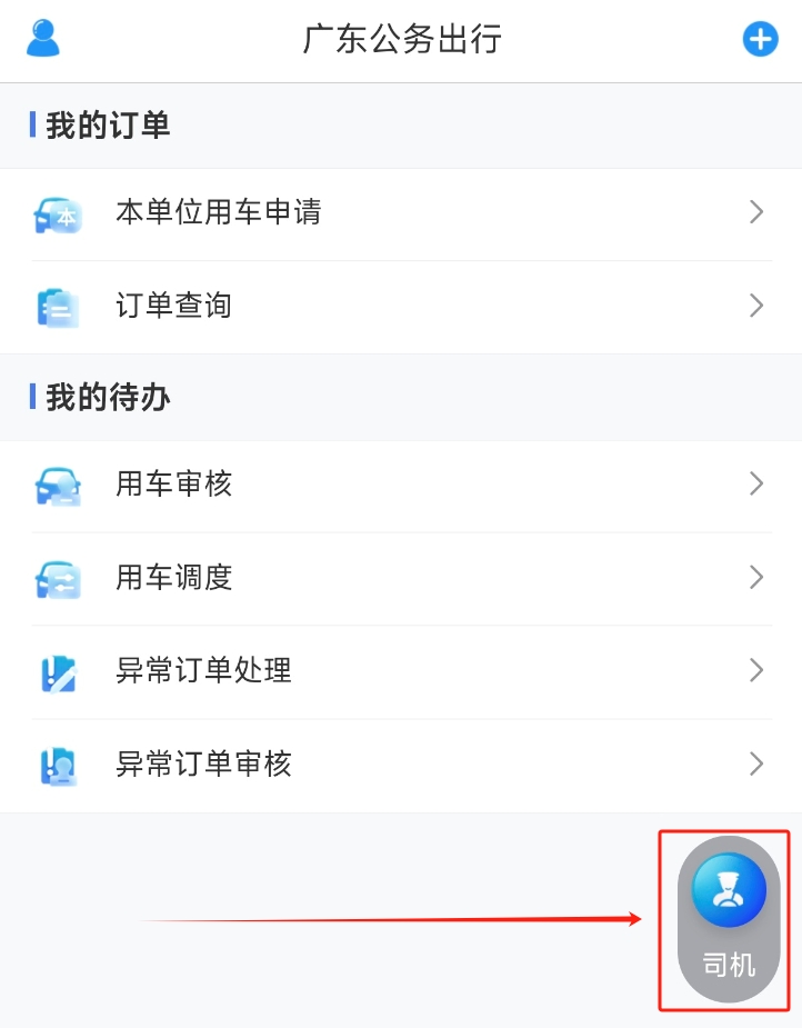 1. 登录APP进入到首页,点击右下角“司机”按钮;