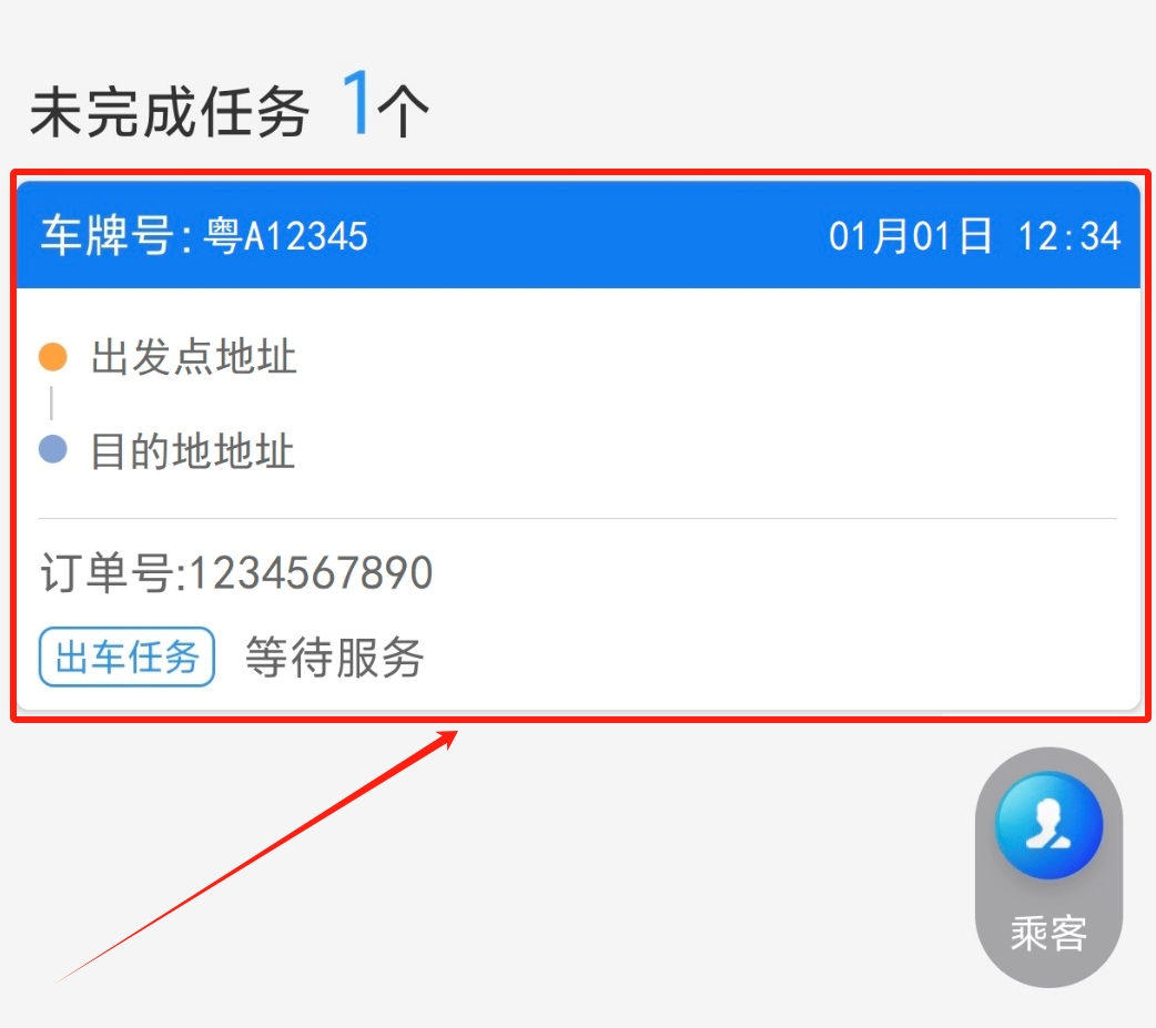 2.在“未完成任务”栏,选择此次出行的订单(如有多个订单,注意查看时间和目的地);